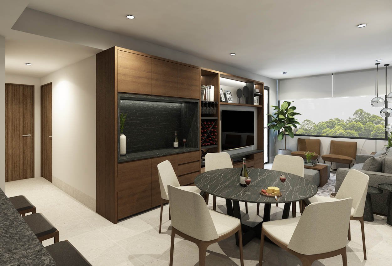 Luis y su esposa, una pareja de recién casados, nos contactaron para hacer la propuesta de diseño de sala, comedor y recámara de su departamento.