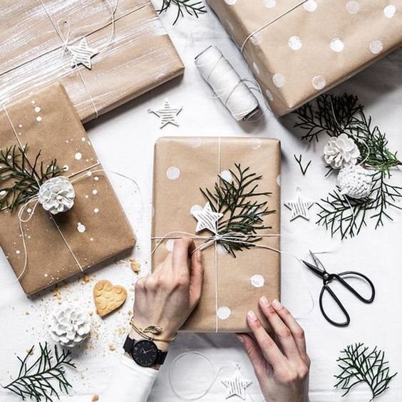 No hace falta comprar los típicos papeles con patrones y figuras navideñas (que además pueden ser bastante caros), con papel craft y algunos detallitos invernales o naturales podemos lograr cosas padrísimas.