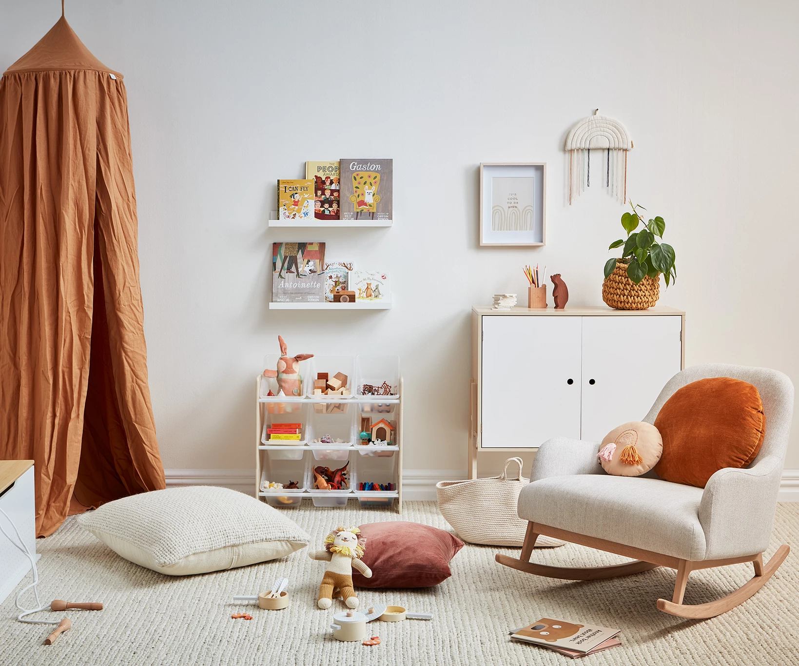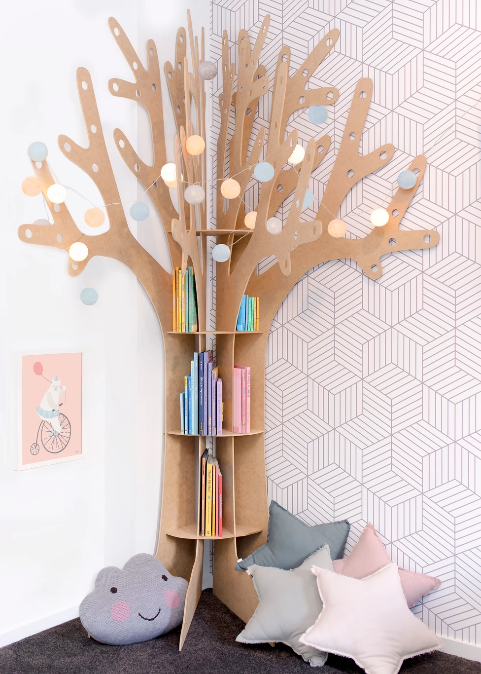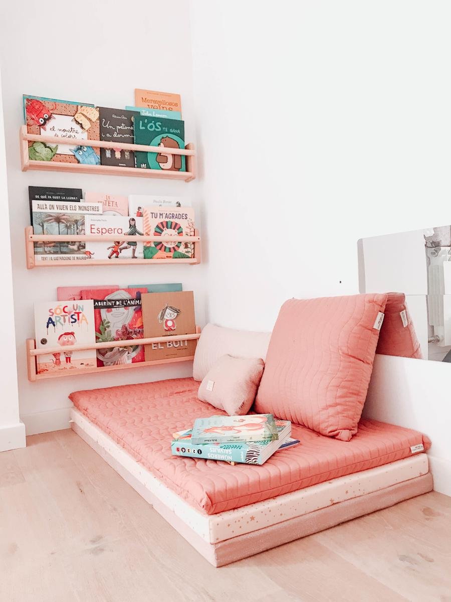 Ningún cuarto de juegos está completo sin un rincón de lectura, un pequeño librero o unas repisas que sean accesibles, ayudaran a fomentar la lectura.