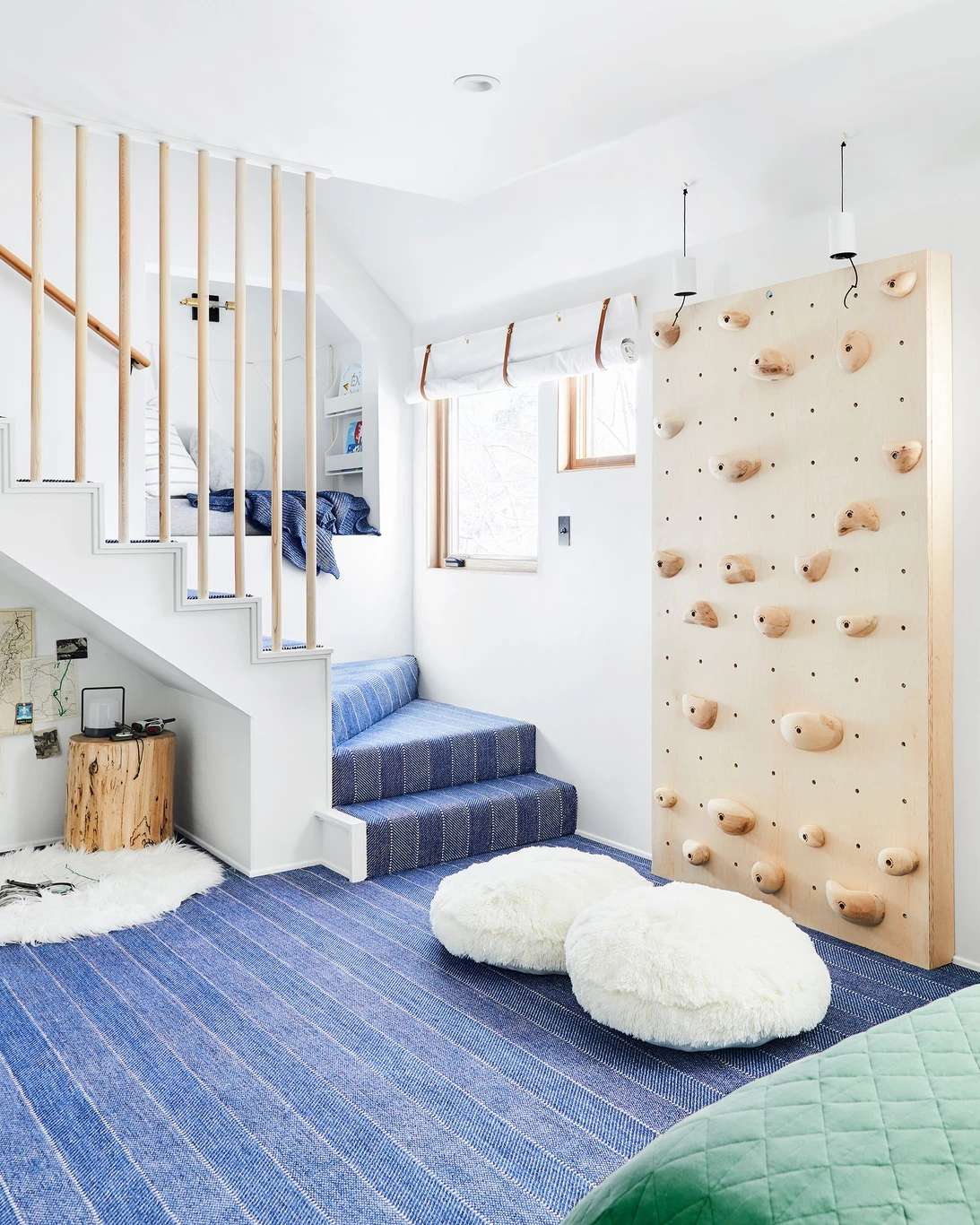 Hay camas con resbaladillas, casitas del árbol para interiores, columpios y muros de escalar que le darán un toque super divertido a este espacio.