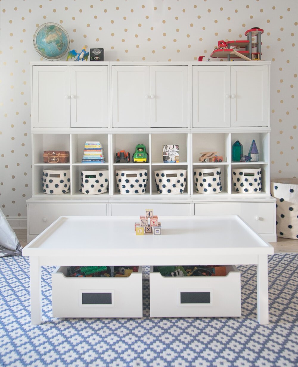 Mantener sus juguetes favoritos a la mano ayudara a que el orden se mantenga por más tiempo. Las repisas y los muebles abiertos son la mejor opción, los niños encontraran muy fácil con lo que quieren jugar en ese momento y sabrán a donde regresarlo.