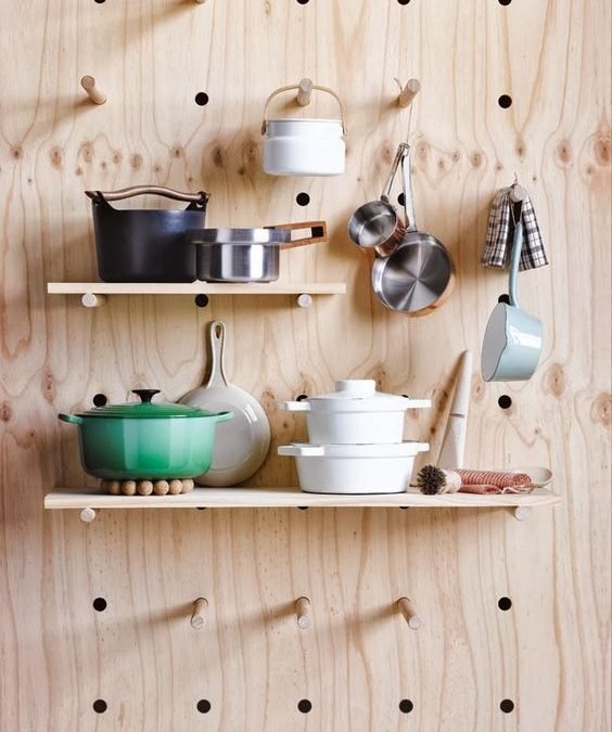 Los estantes abiertos ayudaran a mantener ordenados utensilios que usas con poca frecuencia. Hay que tenerlos un poco menos a la mano, pero siempre a la vista para cuando se necesiten.